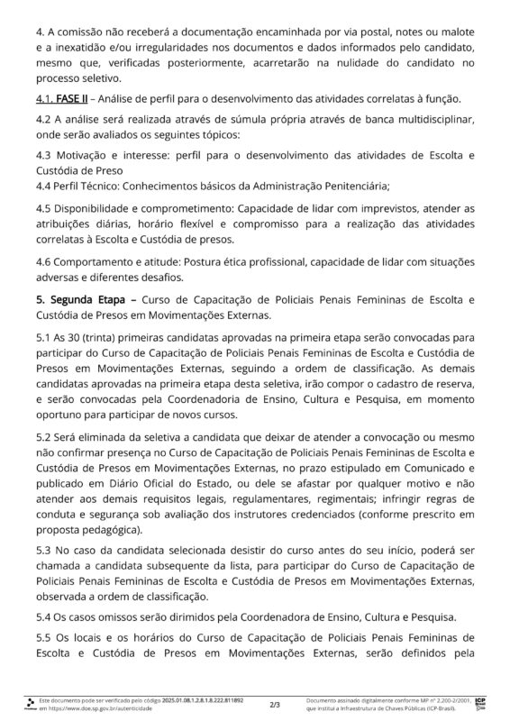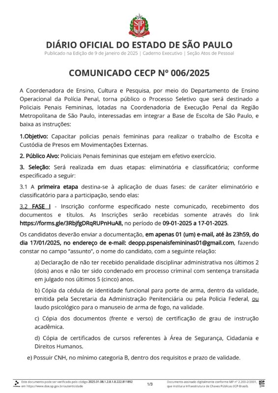 • Após 12 anos do pedido “SINDESPE” processo seletivo será destinado a Policiais Penais Femininas (escolta e custódia de presos).
