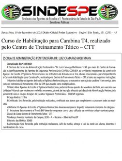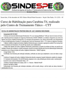 Curso de Habilitação para Carabina T4 “fuzil” realizado pelo Centro de Treinamento Tático – CTT, publicada relação dos nomes e data.