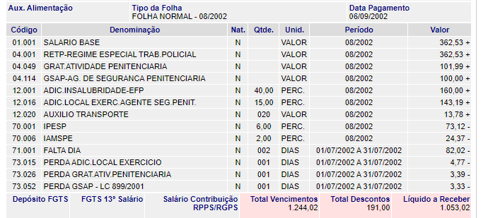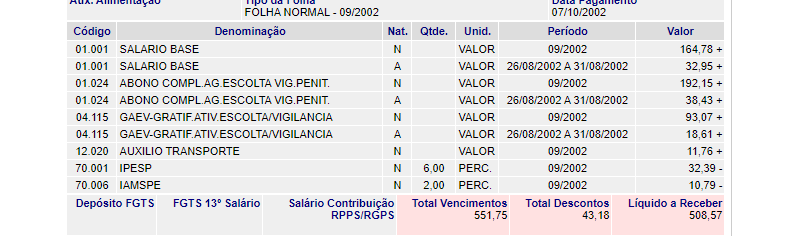 Abaixo folha de pagamento de um “AEVP” no ano de 2002