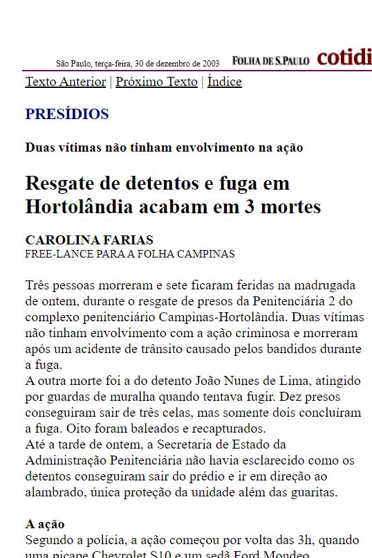 O que na época era palanque político do então Governador de São Paulo Geraldo Alckmin com o “SLOGAM” mais polícia na rua, vendendo para população que os policiais militares iriam sair das muralhas dos presídios para fazer a segurança e patrulhamento nas ruas .