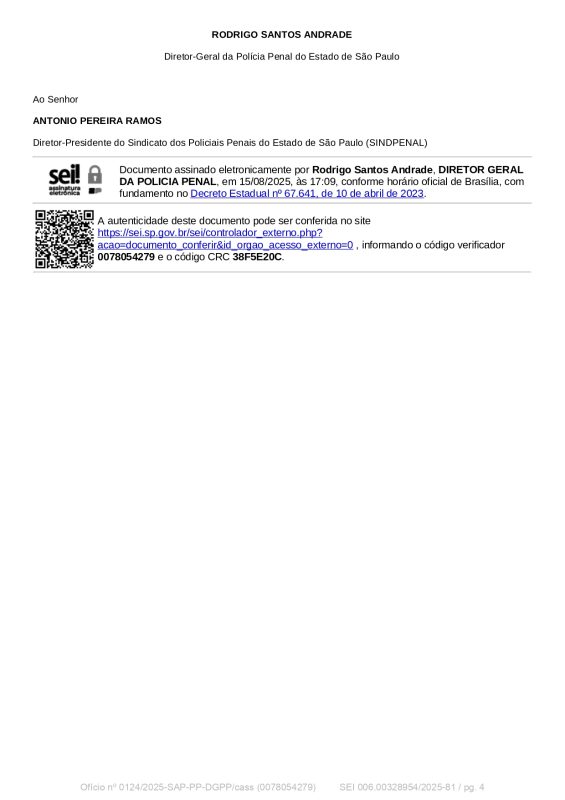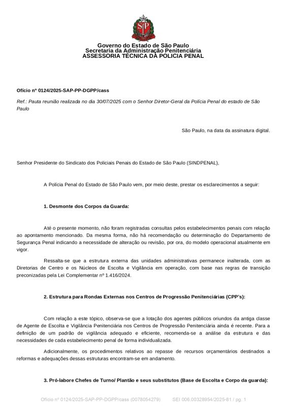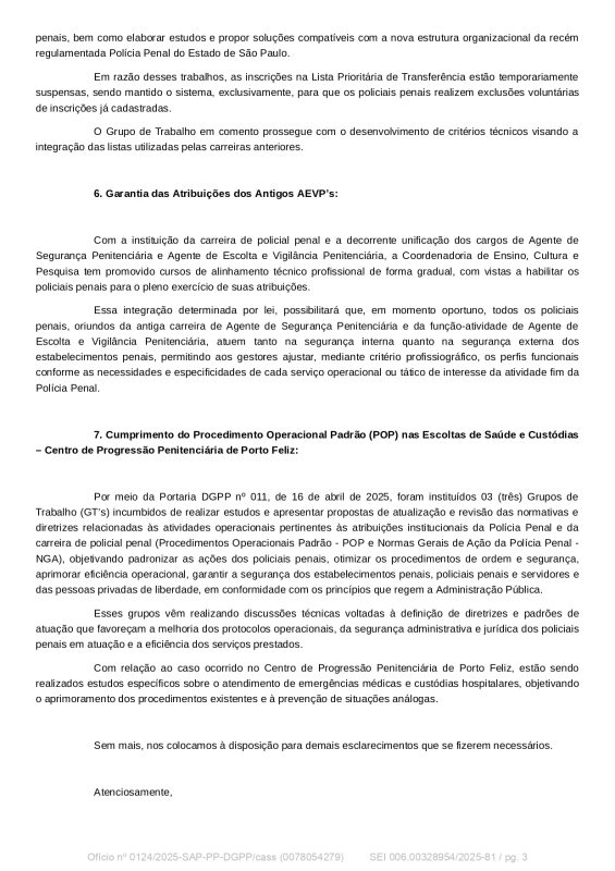 O “DGPP” Esclareceu dúvidas importantes para a categoria dos policiais penais, em ofício enviado ao SINDPENAL, na tarde de hoje dia 19 agosto de 2025.