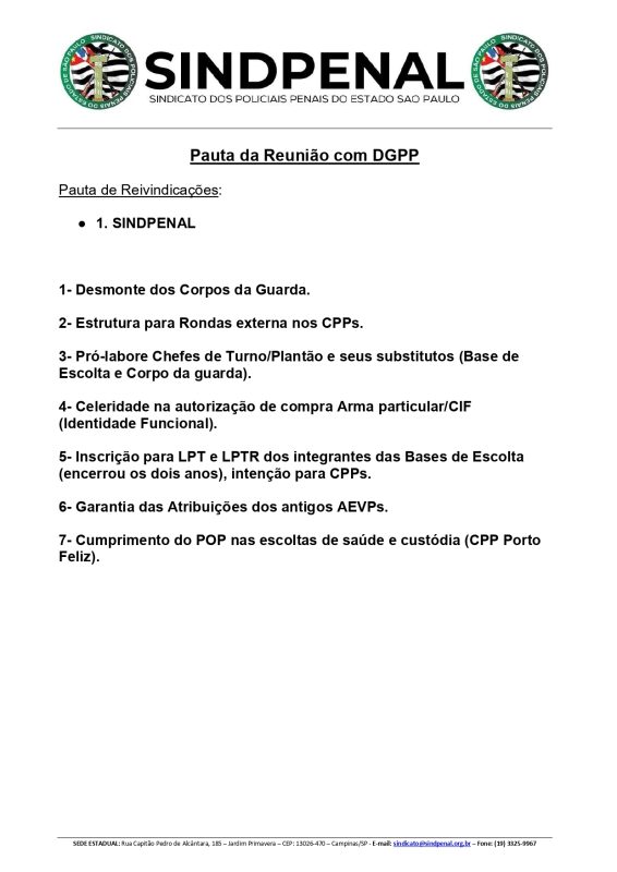 A pauta foi apresentada em reunião na sede da Polícia Penal, no último dia 30 julho de 2025 com o Diretor Geral da Polícia Penal, Dr Rodrigo Santos Andrade.