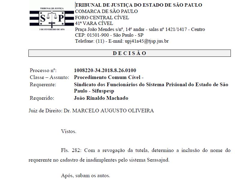 Sindicato é condenado a indenizar seu ex-presidente “SIFUSPESP” e nome é incluído no “SERASAJUD” Posted By administrador on 26/06/2020 Decisão transitada e julgada. ABAIXO ESPELHO DO SERASA DA ENTIDADE SINDESPE Post Views: 26