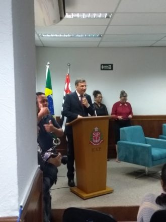 Abaixo imagem do Secretário da SAP Coronel Nilvaldo Cesar Restivo, em discurso reafirmou que o SINDESPE – Sindicato dos Agentes de Escolta Vigilância Penitenciária é único representante legal da categoria.