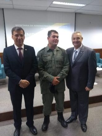 Abaixo Secretário da SAP Coronel Nilvaldo Cesar Restivo, Vice-presidente Renato Mingardi e Dep. Estadual Coronel Telhada, que colocou seu gabinete na ¨ALESP¨ Assembleia Legislativa de São Paulo à disposição da entidade.