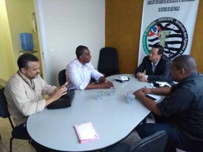 O Sr. Major Jaime de Souza (Chefe de Gabinete – Vereador Tenente Santini) e o Assessor Parlamentar Sr. Soares com o Presidente Sr. Antonio Pereira Ramos – SINDESPE junto com o Diretor Sr. Xavier.