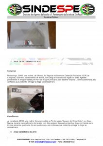 Levantamento feito pelo “SINDESPE” sobre apreensões de drogas nas cadeias da região de Campinas enviadas pelos “correios” 2020 “tiveram um acréscimo de 1000%”