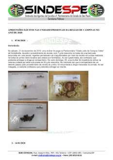 Levantamento feito pelo “SINDESPE” sobre apreensões de drogas nas cadeias da região de Campinas enviadas pelos “correios” 2020 “tiveram um acréscimo de 1000%”