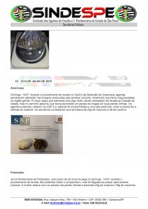 Levantamento feito pelo “SINDESPE” sobre apreensões de drogas nas cadeias da região de Campinas enviadas pelos “correios” 2020 “tiveram um acréscimo de 1000%”