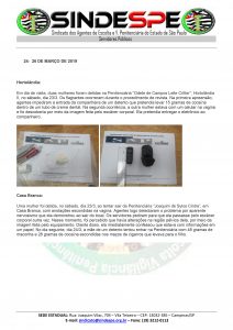Levantamento feito pelo “SINDESPE” sobre apreensões de drogas nas cadeias da região de Campinas enviadas pelos “correios” 2020 “tiveram um acréscimo de 1000%”