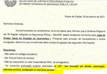 Minas Gerais mantém “QI” para exigência no cargo de Diretor Geral de Presídio. São Paulo seguirá os mesmos critérios?