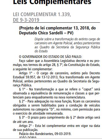 Extinção do cargo na polícia civil, “carcereiro” a simples exigência de carteira de habilitação teve o prazo mínimo de um ano, considerando que ambas as carreiras já eram de policiais.