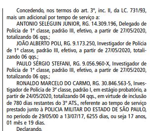 No diário oficial do dia 11/06/2020, em vários órgãos do Estado, foram publicadas concessões de sexta-parte e quinquênios, pelo que parece o Estado de São Paulo foi divido entre “DRHU” Departamento de Recursos Humanos da Secretaria da Administração Penitenciária e demais Secretarias .