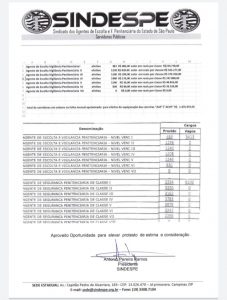 Ofício entregue “ALESP” apresenta o Impacto para equiparação salarial do Policial Penal “AEVP”/ASP”cerca de R$1.476.950,00.