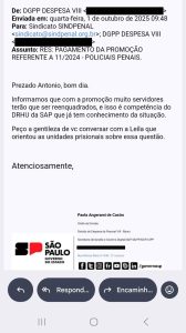 Pagamento dos atrasados da promoção, a responsabilidade é da “SAP”, segundo documento recebido da Fazenda Pública.
