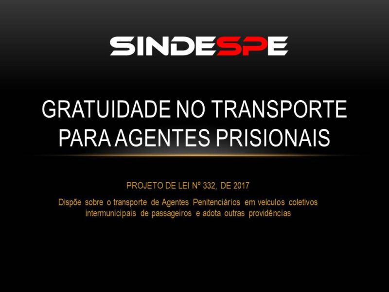 DEPUTADA CLÉLIA GOMES APRESENTA PROJETO QUE PERMITE A VIAGEM INTERMUNICIPAL GRATUITA AOS AGENTES PRISIONAIS O pleito é antigo, porém esquecido, já em 2004 o saudoso Deputado Estadual Coronel Ubiratã havia apresentado na ALESP a PL nº 189/2004, no entanto o Sindespe apurou que esse projeto parou na Comissão de Transportes em 2011 e lá ficou. O sindicato mediante essa pesquisa procurou a Deputada Clélia Gomes que prontamente vem se sensibilizando…