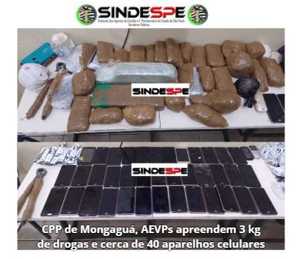 AEVPs realizaram uma grande apreensão de drogas e celulares no final de 2023 no CPP de Mongaguá, mesmo sem efetivo e sem condições de trabalho.