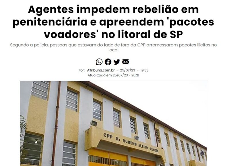 O SINDESPE compareceu hoje, 26 de julho, no Centro de Progressão Penitenciária de Mongaguá, para verificar “in loco” os relatos dos servidores, referente à ocorrência que se deu na data de ontem (25/07/23), quando houve um tumulto generalizado após arremesso de vários pacotes de ilícitos para o interior da unidade prisional de Mongaguá. Na foto acima o Diretor do Sindespe Renato Mingardi, nesta manhã no CPP de Mongaguá Com a…