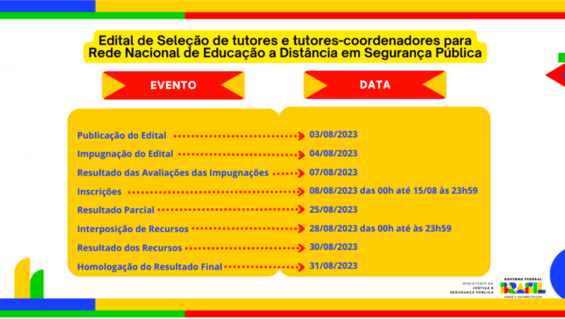 Ministério da Justiça divulga edital para selecionar tutores para a Rede EaD Senasp