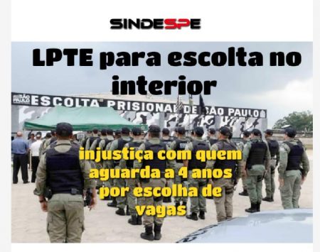 No último sábado, dia 28, foi publicado no diário oficial os critérios para os Agentes de Escolta e Vigilância Penitenciária que queiram se inscrever na Lista Prioritária de Transferência Especial – LPTE de Escolta para o interior do Estado. Ocorre que um dos impedimentos de inscrição atinge os mais de 120 AEVPs que são lotados provisoriamente em unidades prisionais e na base de escolta da capital paulista que ainda não tiveram acesso…