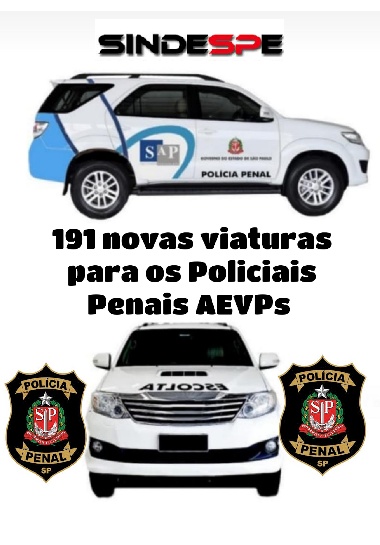 Está disponível no site da SAP o processo de licitação para a compra de 191 novas viaturas para uso dos Policiais Penais AEVPs. A empresa ganhadora terá até 120 dias para entregar os lotes das viaturas. Abaixo estão algumas das características dos veículos que devem ser comprados pelo governo. Importante destacar que deverão vir com o adesivo POLÍCIA PENAL. Processo SAP-PRC-2022/27391 OBJETO: Aquisição de viaturas (veículos e respectivas adaptações), destinados…