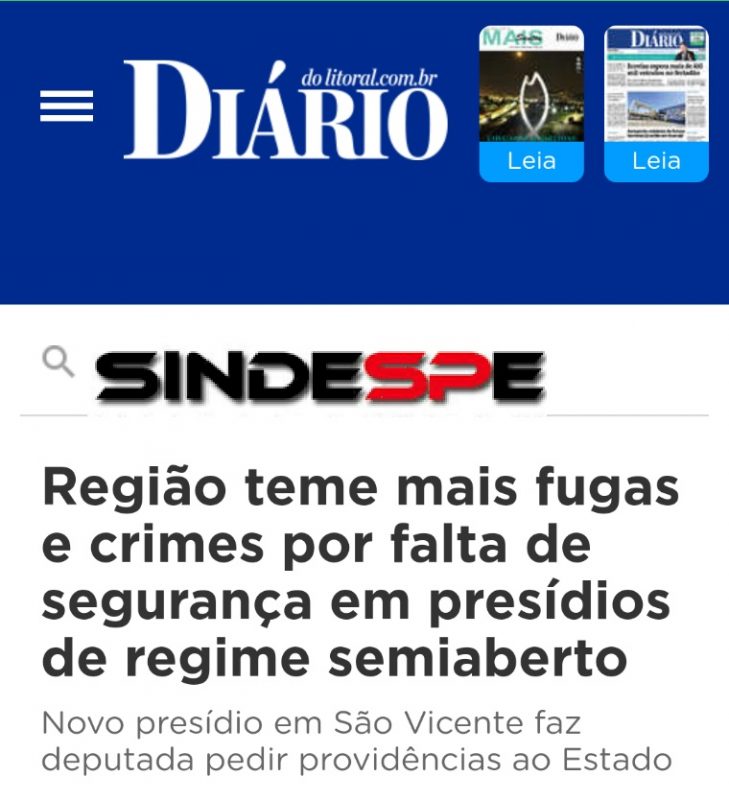 Diário do Litoral destaca o trabalho do SINDESPE junto a Deputada Federal Rosana Valle, “GUARDA ARMADA” regime semiaberto