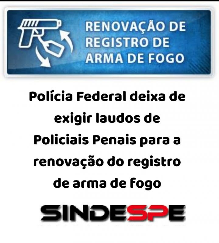 A título de informação para todos os Policiais Penais AEVPs e ASPs da ativa, o Departamento da Polícia Federal – Sinarm, deixou de exigir o laudo psicológico e o laudo de capacidade técnica para a renovação do registro de arma de fogo. O SINDESPE entrou em contato via telefone com a Superintendência da Polícia Federal em São Paulo que confirmou a informação, somente para a aquisição de armas de fogo …