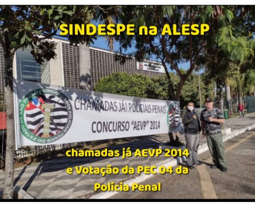 Nesta semana, entre os dias 09 a 13 de agosto, o SINDESPE estará presente na ALESP para fazer uma manifestação em prol das chamadas dos AEVPs aprovados no concurso de 2014 e cobrar todos os deputados para que a PEC 04 da Polícia Penal seja colocada em votação. Pedimos a presença de todos os aprovados no concurso AEVP 2014 que puderem comparecer na ALESP no horário das 9:00 as 16:00…