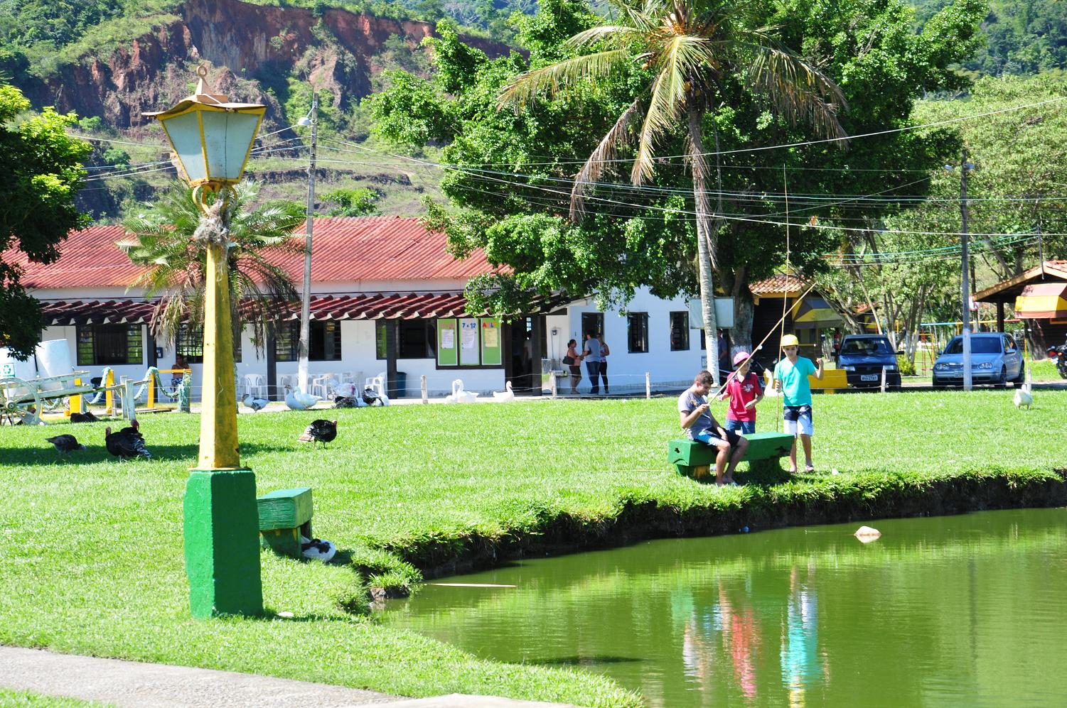 Lazer: Animais que circulam livremente, charrete, cavalo, pesca, playground, quadras esportivas.