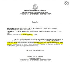 SAP responde ofício do SINDESPE: Penitenciária Feminina da Capital poderá sim ter o corpo da guarda mesmo com a mudança para semiaberto