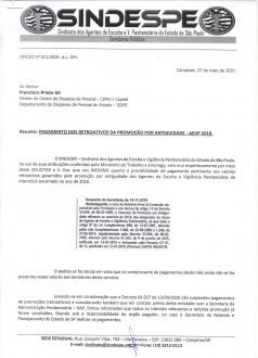 Ontem mesmo, dia 07 de maio de 2020, em contato com o Centro de Despesas de Pessoal da Secretaria da Fazenda na Capital, o presidente da entidade, Sr Antonio Pereira Ramos, questionou novamente o pagamento da promoção dos “AEVP”s e da possibilidade de uma folha complementar, conforme orientação recebida enviamos o documento abaixo: