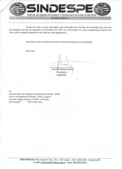 Após a Secretaria da Fazenda se negar em receber pessoalmente no setor de protocolo em São Paulo, Av. Rangel Pestana, o sindicato enviou o mesmo documento de forma eletrônica (via e-mail) e por Sedex.
