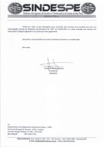 SINDESPE envia ofício à Secretaria da Fazenda pedindo pagamento dos atrasados da promoção “AEVP” 2019