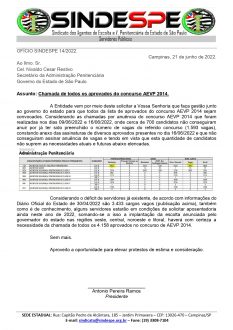 Ofício 14-2022 – Chamada de todos os aprovados do concurso AEVP 2014 – Secretário da SAP_page-0001 Posted By administrador on 22/06/2022