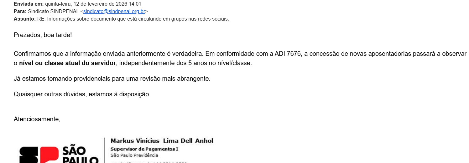 SPPREV confirma ao SINDPENAL que o policial penal não vai perder mais o nível ou classe na aposentadoria, conforme entendimento do “STF”.